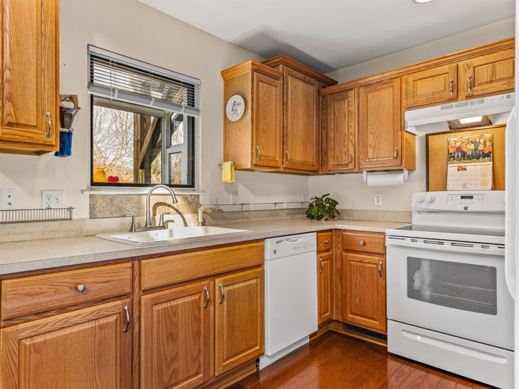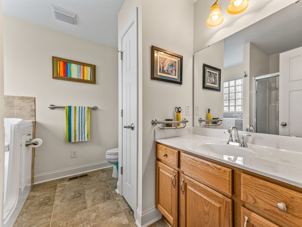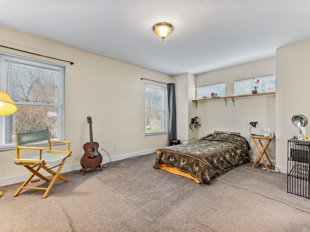 The main floor features vaulted ceilings and a bright, open-concept great room, dining area, and kitchen—an ideal layout for both everyday living and effortless entertaining. The main-level primary suite provides convenience and accessibility with a walk-in shower, separate walk-in tub, and a nearby laundry closet. Upstairs, two additional bedrooms, a full bath, and a versatile bonus room offer flexible space for guests, work, or hobbies. The attached two-car garage is a true rarity in this location, providing secure parking and valuable extra storage seldom found downtown.